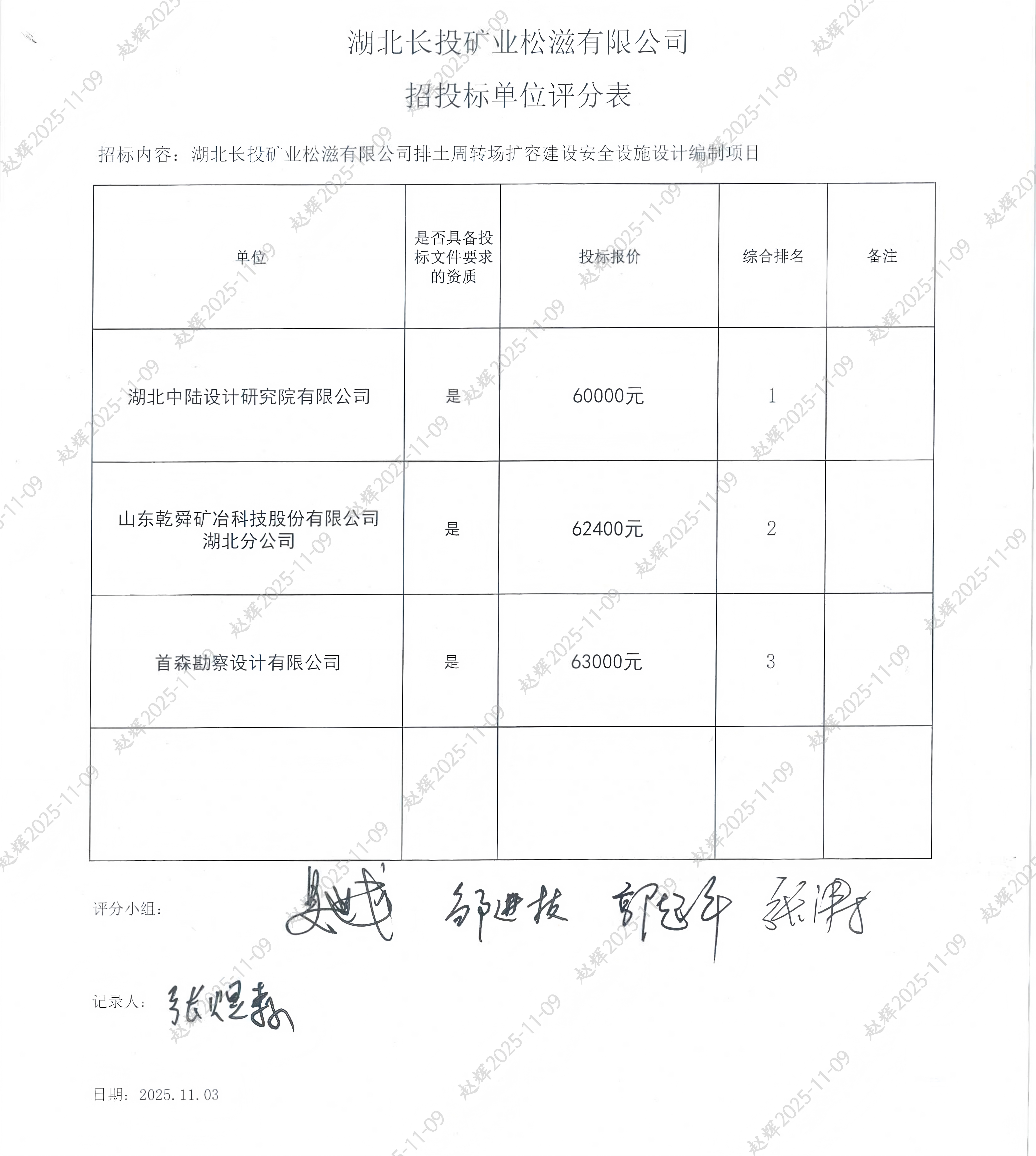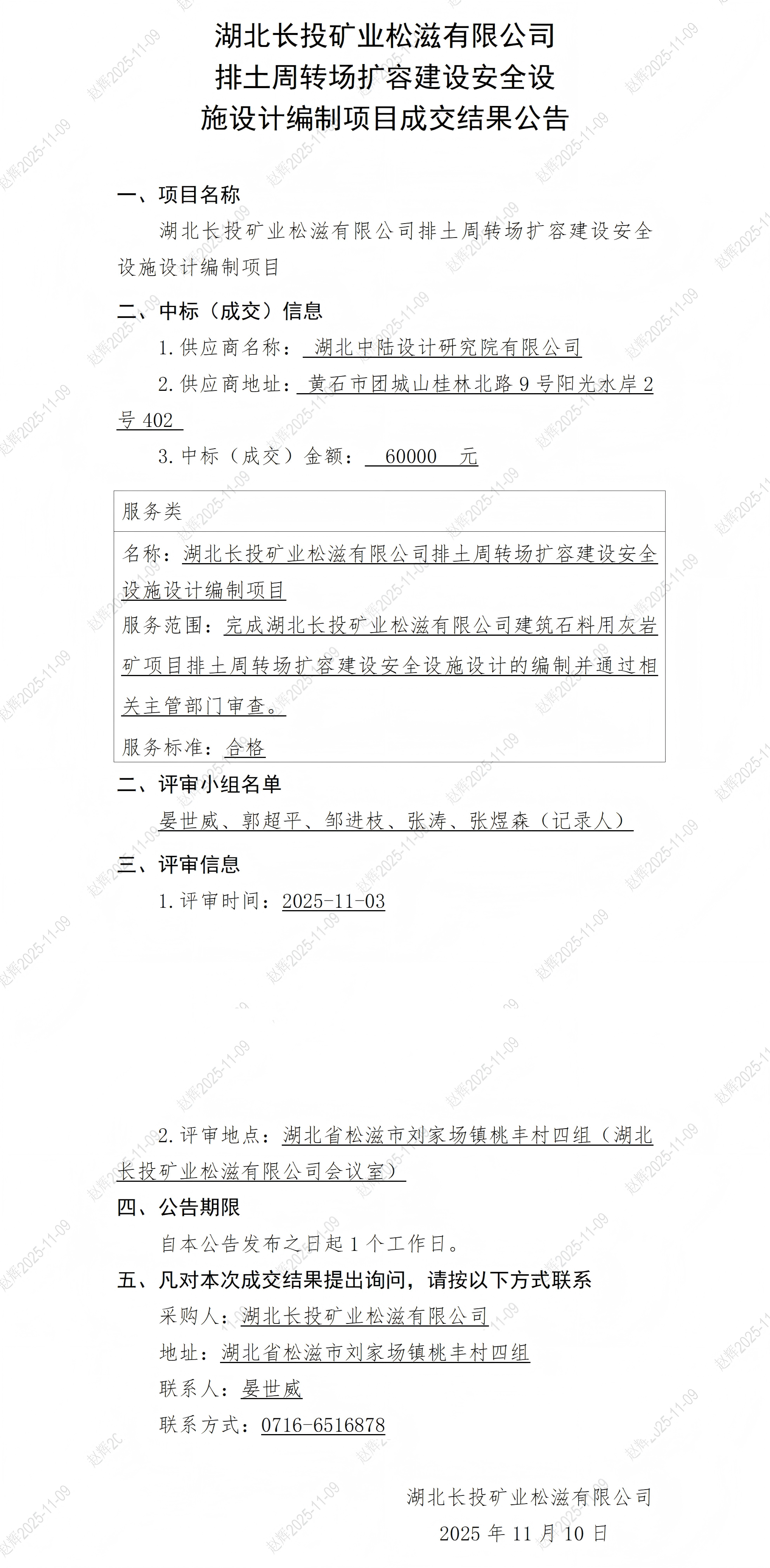 湖北长投矿业松滋有限公司排土周转场扩容建设安全设施设计编制项目成交结果公告