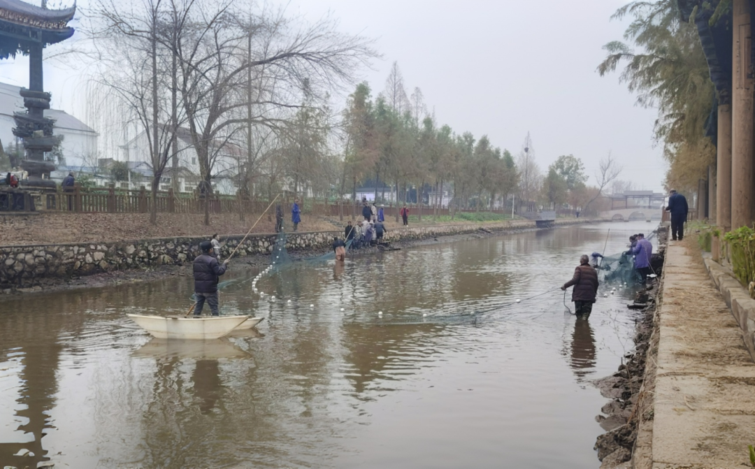 “起鱼啦!”一声号子响彻寒冬的清晨。十余名村民在松滋市八宝镇白水淌村的新民渠畔合力收网,水面翻滚,鱼跃人欢。