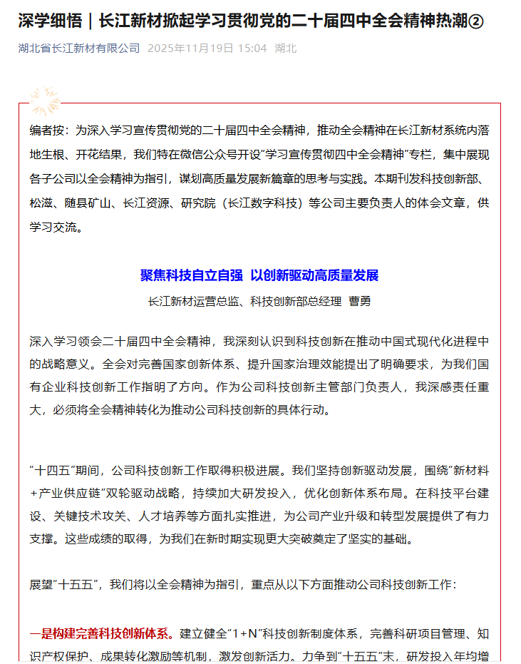 - 深学细悟|长江新材掀起学习贯彻党的二十届四中全会精神热潮① 11-14
