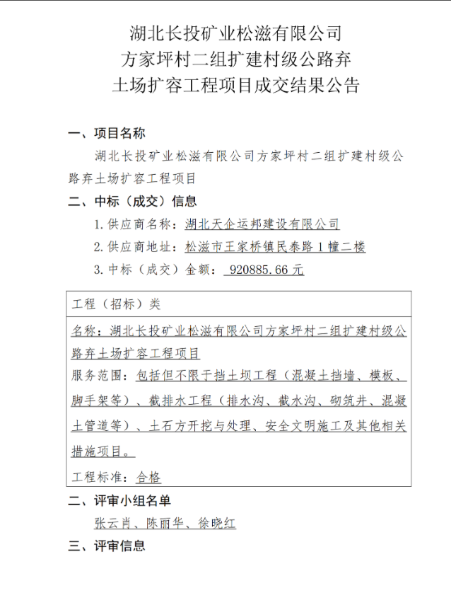 - 湖北长投矿业松滋有限公司排土周转场扩容建设安全设施设计编制项目成交... 11-07