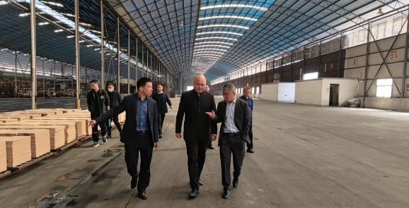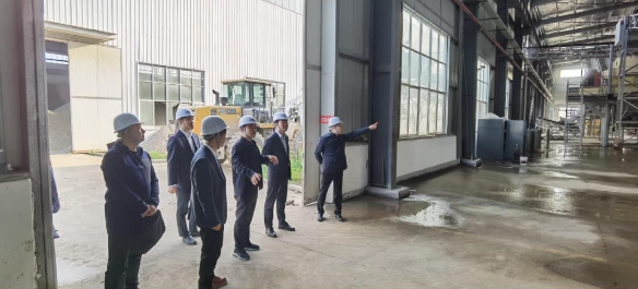 〔童卫宁(右二)在枝江绿色建材产业园项目•中试基地现场视察调研〕
