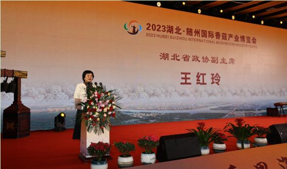 省政协副主席王红玲宣布2023湖北·随州国际香菇产业博览会开幕。多哥驻华大使馆(代办)加拿玛·查·巴查西出席。韩国驻武汉总领事馆总领事河成柱,中国工程院院士、国际药用菌学会主席李玉,中国食用菌协会会长高茂林,省农业农村厅党组成员、总经济师曾德云先后现场致辞或视频致辞。国家食用菌产业技术体系首席专家谭琦,省农发集团董事长朱万奎,长江产业集团党委副书记、总经理马恒出席。