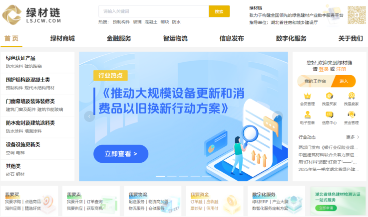 在服务端,构建数字化赋能平台。以“数智新材”为方向,打造“材智云一体化管理平台”“绿色建材供应链平台”“湖北省香菇供应链平台”等数字系统。其中“绿色建材供应链平台”上线一年,入驻企业超2500家,交易额突破30亿元,依托“数据互通+智能风控”实现供应链全流程可视化管控。